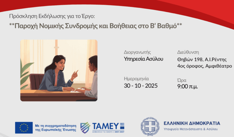 By admin Δράσεις Δημοσιότητας ΗΜΕΡΙΔΑ ΓΙΑ ΤΗΝ ΔΡΑΣΗ ΠΑΡΟΧΗ ΝΟΜΙΚΗΣ ΣΥΝΔΡΟΜΗΣ ΚΑΙ ΒΟΗΘΕΙΑ ΣΤΟ Β ΒΑΘΜΟ ΣΤΟ ΥΠΟΥΡΓΕΙΟ ΜΕΤΑΝΑΣΤΕΥΣΗΣ ΚΑΙ ΑΣΥΛΟΥ Φωτογραφικό Υλικό Πρόγραμμα Powered By EmbedPress